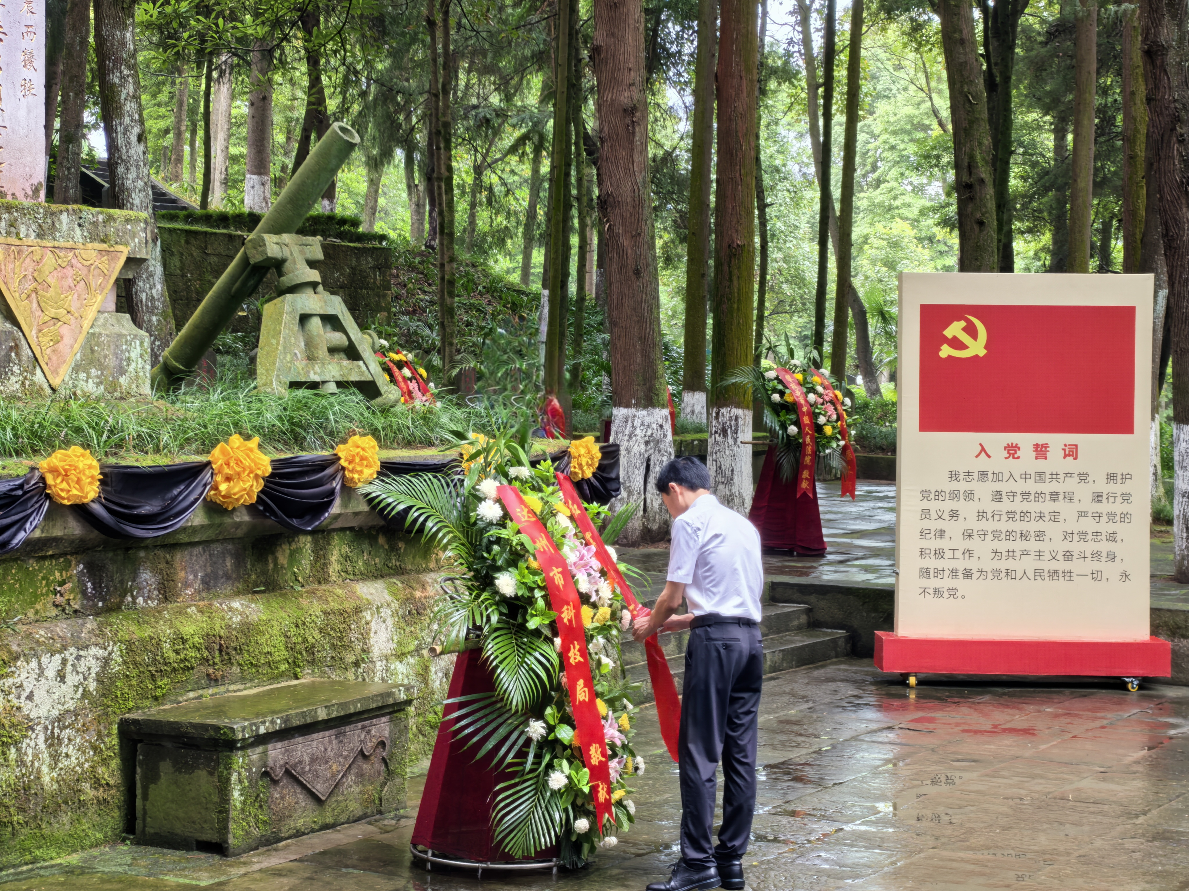 为庆祝中国共产党成立103周年,深入学习贯彻习近平新时代中国特色社会主义思想和党的二十大精神,巩固拓展主题教育成果和提升党纪学习教育质效。7月3日,中共达州市科技创新综合党委书记李国洲带队,前往川陕革命根据地红军烈士陵园开展党性教育活动。各县(市、区)科技创新综合党委书记,全市科技领域党组织书记代表参加了此次活动。