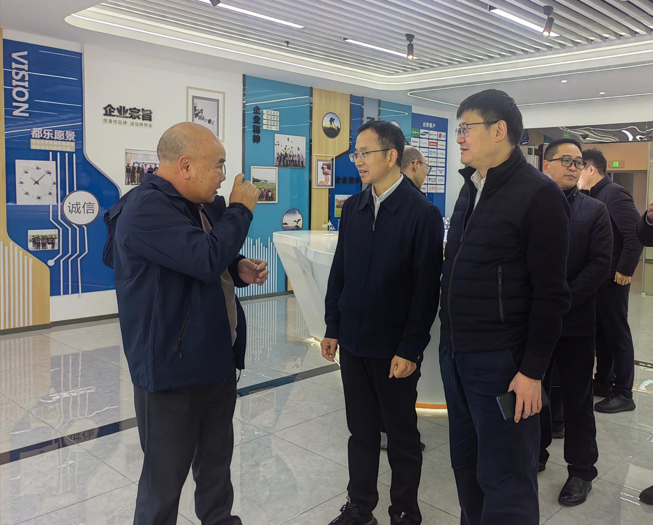 李堂兵一行先后来到四川都乐光电科技有限公司、四川博尔特机器人科技有限公司,实地查看公司生产经营情况,详细了解企业发展历程、标志性产品、应用场景以及人工智能相关项目推进情况等。