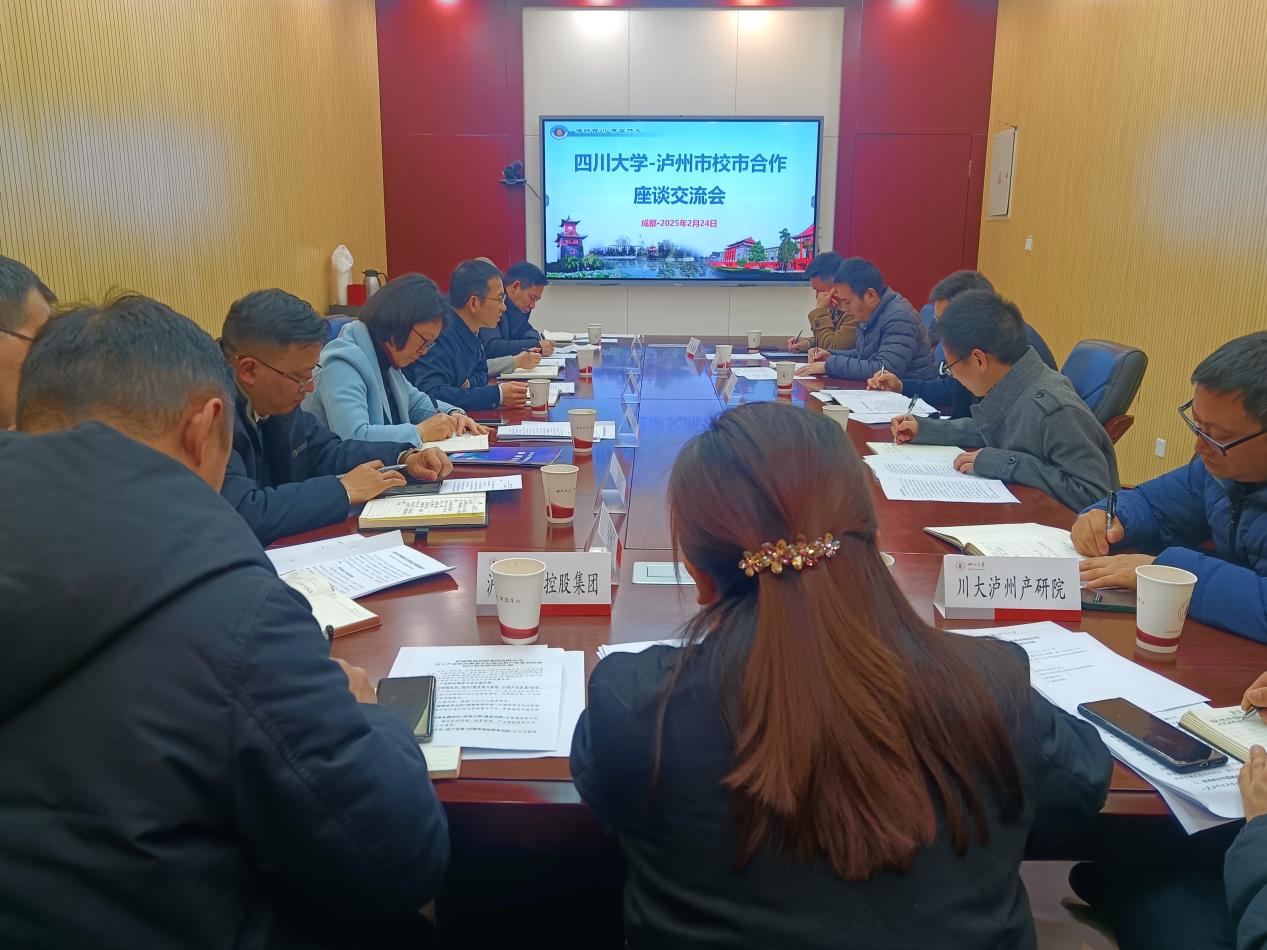 座谈会上,泸州市科技局汇报了双方校市合作成果和新一轮合作签约筹备情况,四川大学科研院作了相关补充汇报;泸州市经济和信息化局、临港经济开发区等部门从泸州产业发展、空间布局、制度保障等方面介绍了泸州优势。四川大学国内合作办公室从校地合作模式、推进方式、运行保障机制等方面介绍了学校校地合作情况;产业集团从大学科技园成果输出和转化,技术经纪人培养及利用等方面分享工作经验。